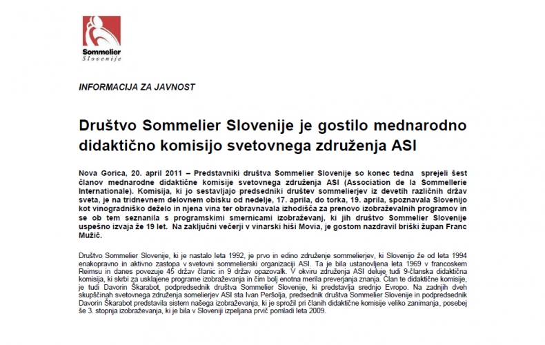 Sommelier Slovenije, 20/04/2011